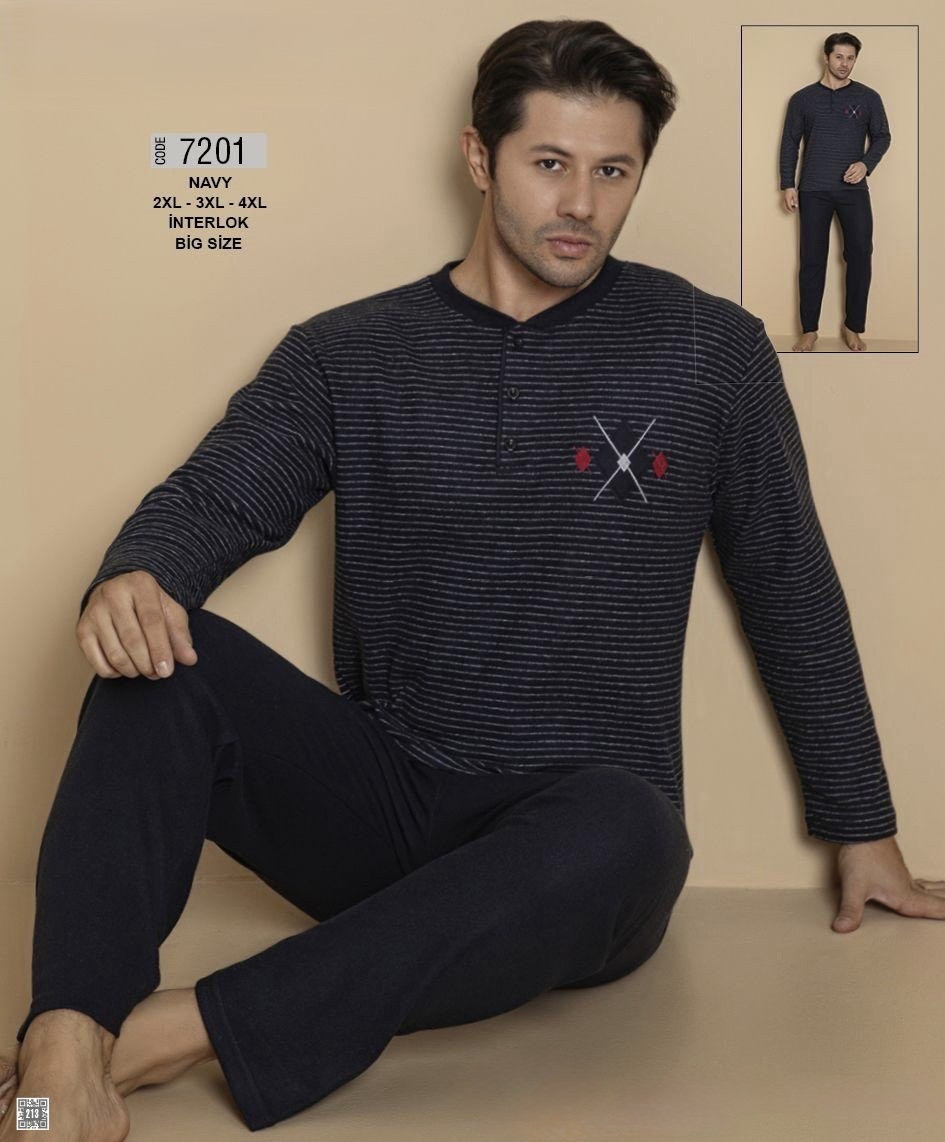 Стильна чоловіча піжама фірми Falkom 7201 Три розміри 2XL, 3XL, 4XL Вільний джемпер та штани на еластичній резинці 100%cotton
